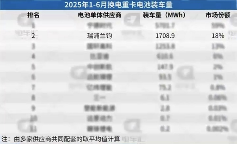 双榜第二!瑞浦兰钧2025上半年新能源重卡电池装车量爆发