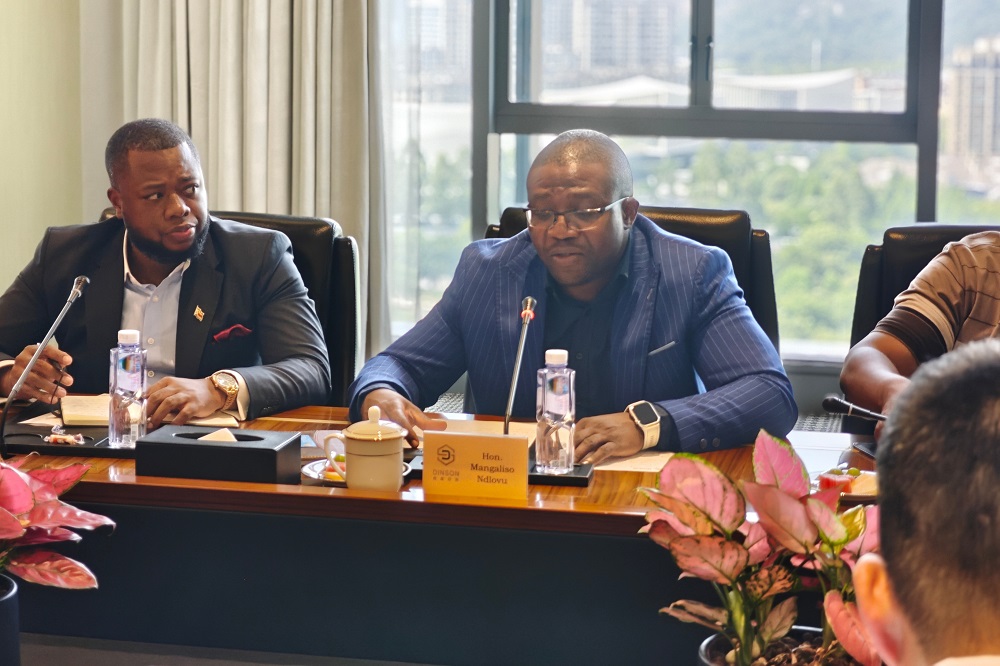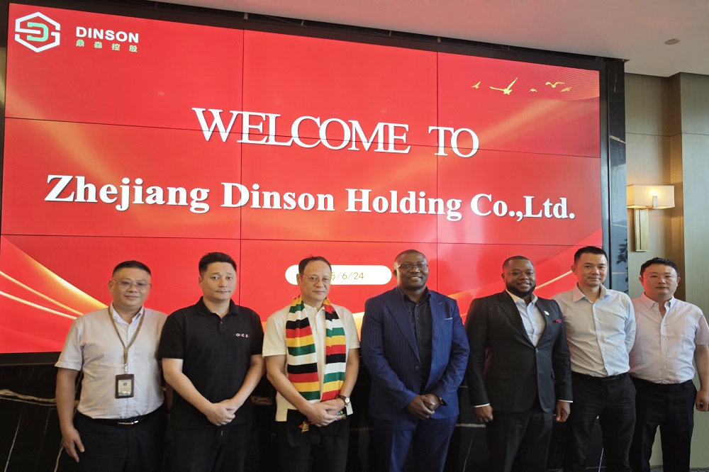 6月24日,津巴布韦工商部部长Hon. Mangaliso Ndlovu(曼加利索·恩德洛武)与财政及经济发展部副部长Hon. David Kudakwashe Mnangagwa(大卫·库达克瓦什·姆南加古瓦)率团莅临浙江鼎森控股有限公司考察指导。鼎森控股董事长陈上松、总经理陈浙,鼎森实业(私人)有限公司总裁许克敏等高层热情接待。