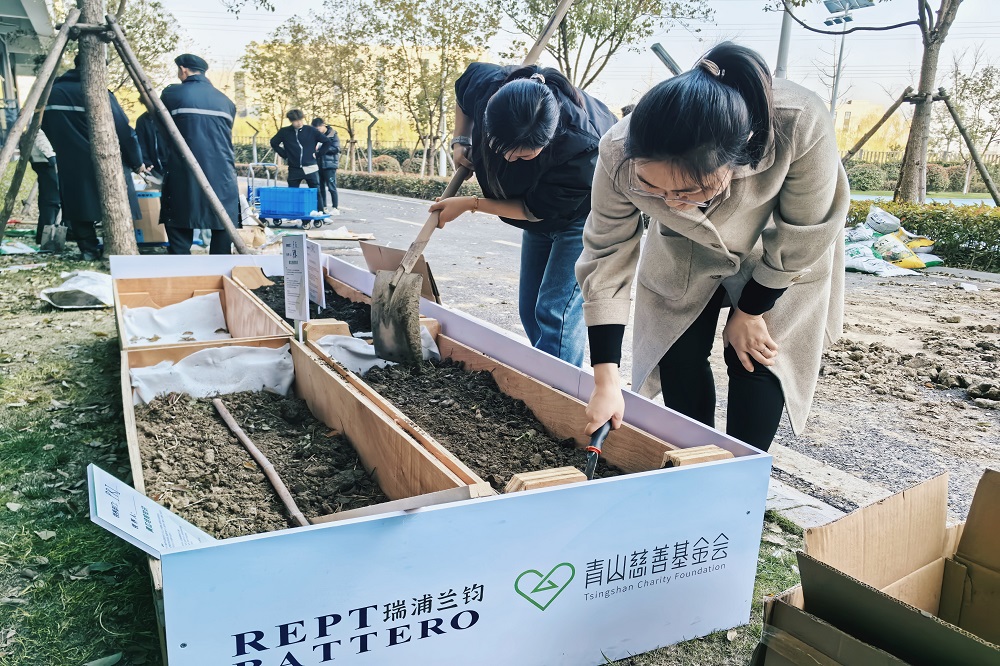 随后,石江珠与赵栋明共同种下象征承诺的“时间胶囊”——首株有机菜苗。未来,嘉善基地各部门将分片种植蔬菜,收获的作物将用于慈善活动,实现“生态新生、爱心新生、希望新生”三重价值。