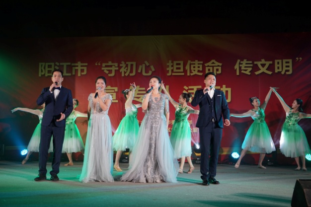 12月3日,阳江市“守初心、担使命、传文明”宣传队走进广东广青金属科技有限公司,结合“不忘初心、牢记使命”主题教育举办展演活动,着力打通宣传、教育、关心、服务群众的“最后一公里”,推动习近平新时代中国特色社会主义思想走进企业、走进职工,引领干部职工学理论、用政策、促发展,激发干事创业积极性,为阳江经济高质量发展作出新的贡献。