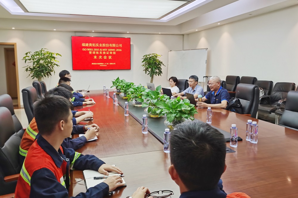 9月4日至8日,莱茵技术监督服务(广东)有限公司审核组对青拓集团有限公司、福建青拓实业股份有限公司、福建青拓科技有限公司进行了为期五天的IATF16949 & ISO9001质量管理体系换证审核。青拓集团研究院院长江来珠、青拓科技总经理王晋、青拓实业股份总经理李学强、青拓冷轧科技副总经理兰亮、青拓集团行政部副总经理刘永清及产品开发设计、生产、采购、销售、人力资源等各部门部长参加会议。